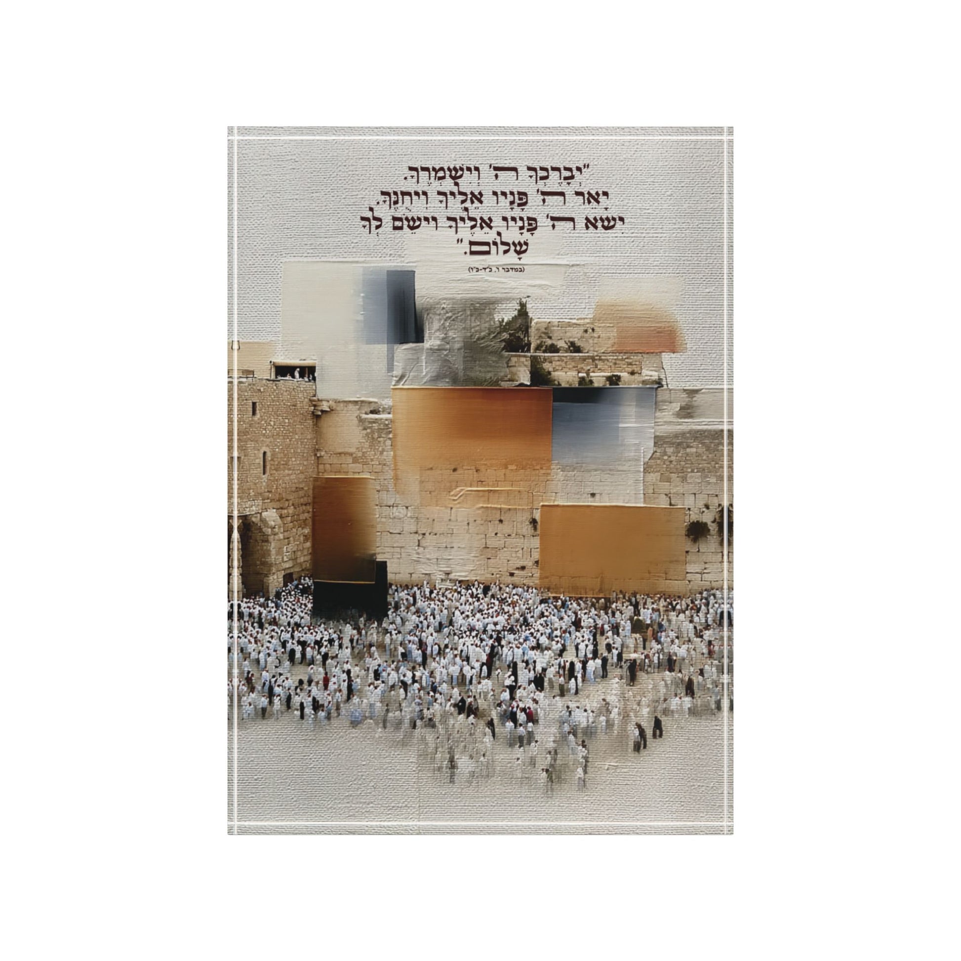 ביצירה זו, בה מתוארים המתפללים עטופי טליתות מול אבני הכותל הקדוש, מקבל הפסוק ממד נוסף: הוא הופך לנוכחות חיה, ברכה שמקיפה את הלב ואת הבית. הכותל, סמל התפילה והקשר לנצח ישראל, מעניק לפסוק עומק של זיכרון ושל חיבור תמידי למקור הברכה.