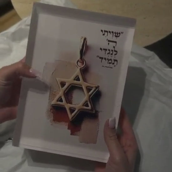 המגן דוד המוזהב שבתוך היצירה מתחבר אל המילים הללו כסמל של זהות ועוצמה יהודית: